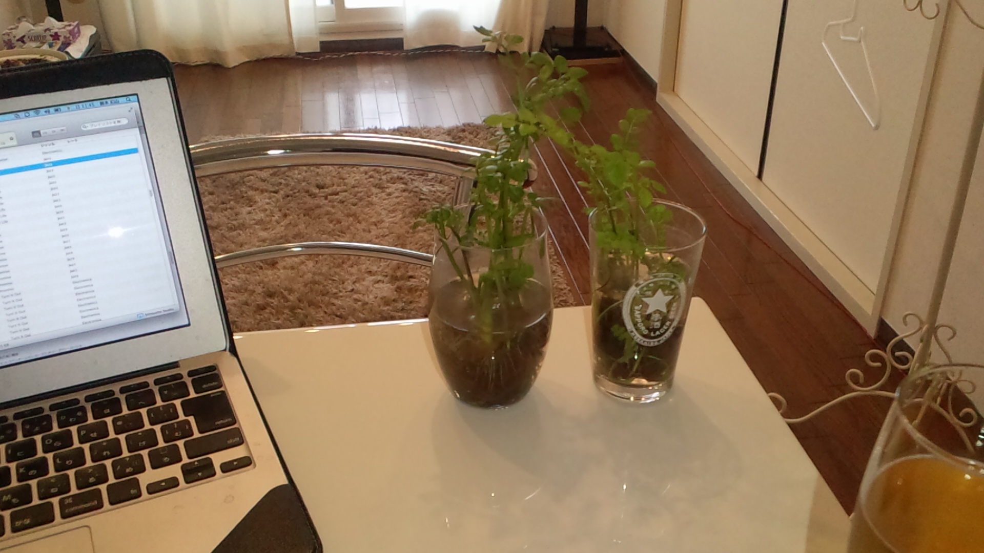 セリは根まで全部食べますが、根っこを少し残して水耕栽培しています(生えて来るんです)。秋田で氷点下の真冬日の中、枯れずに育ってくれています。