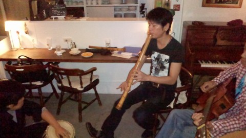 ボーカル&ギターのユニット「ノガイート」さんも訪れ、僕は二尺四寸の長管を出してみたり、色々と楽しかったです^^ でもちょっと酔いすぎ^^;