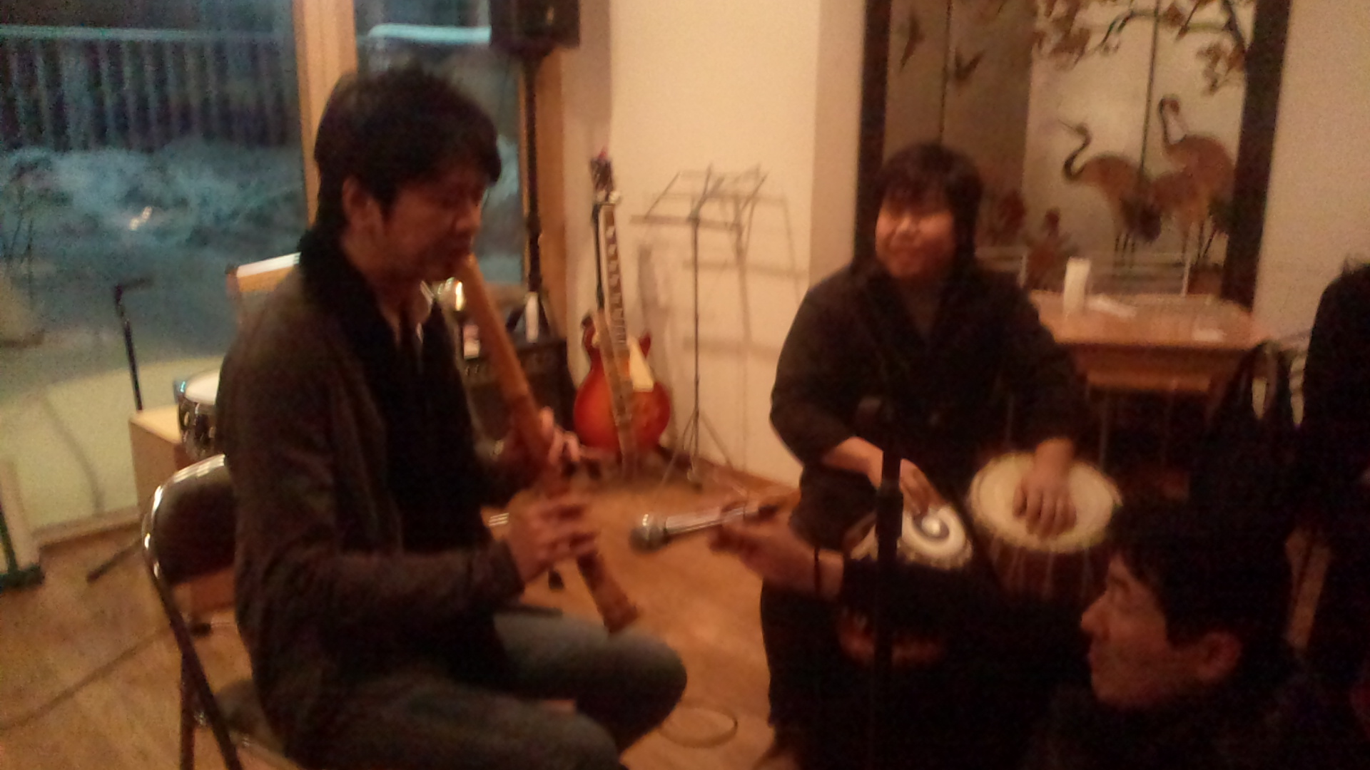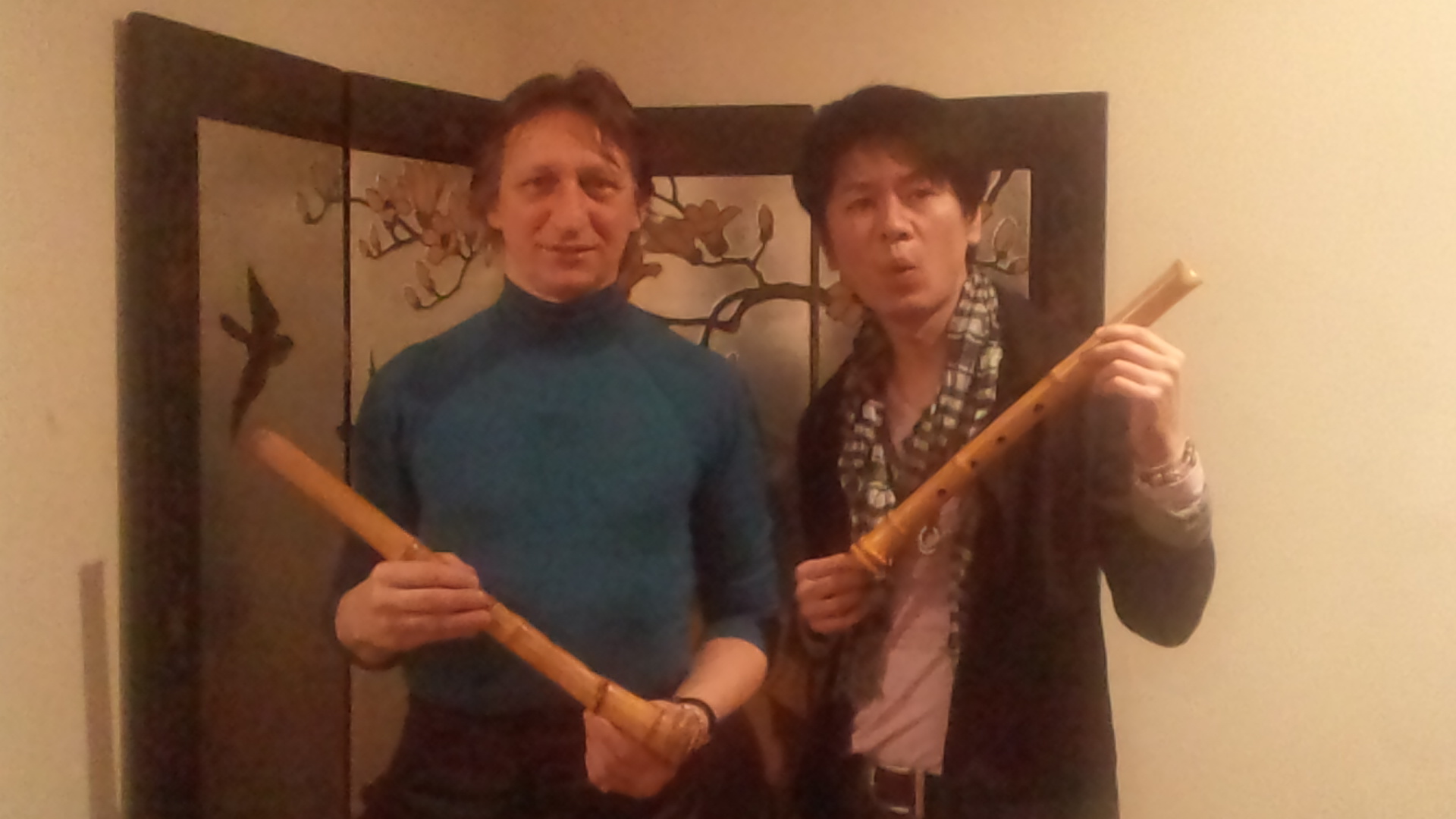 僕が手にしているのは、彼が制作した地無しの七寸管で、なんと、僕へのプレゼントとのコトです。中々良く鳴ります^^