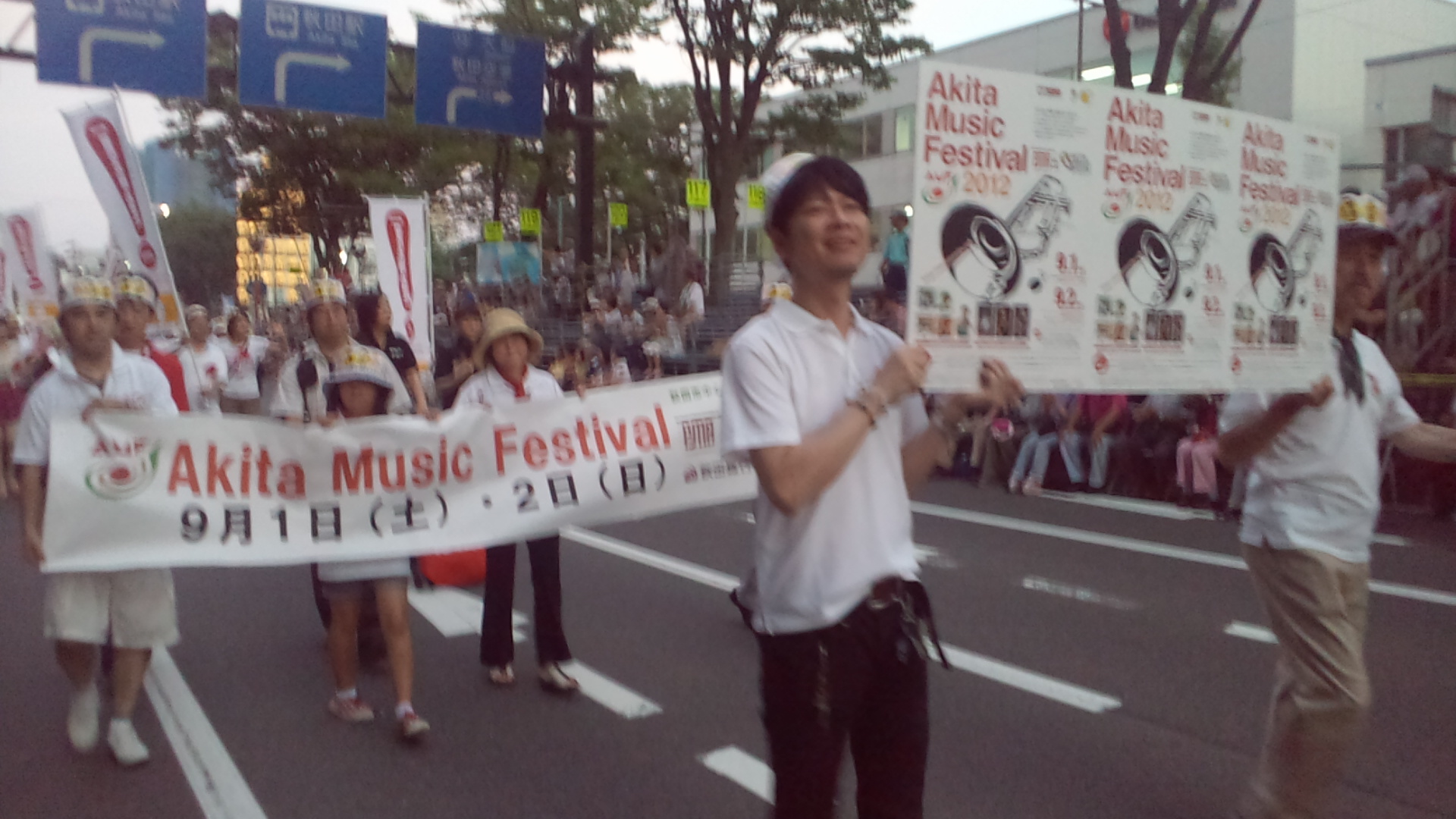 昨夜は秋田市竿灯祭りのパレードに参加しました。僕らは秋田ミュージックフェスティバルの宣伝です^^