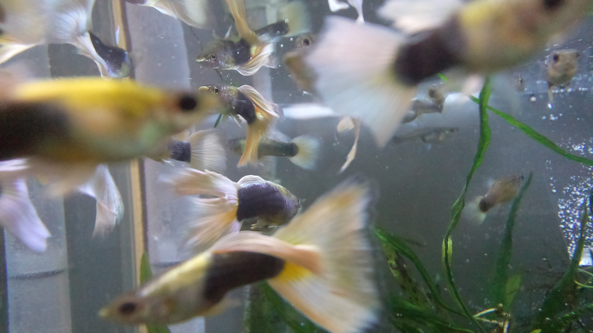 ドイツイエロータキシードグッピーは凄く増えて、コンクールレベルの個体も居ます。里子に出したいくらいですね^^
