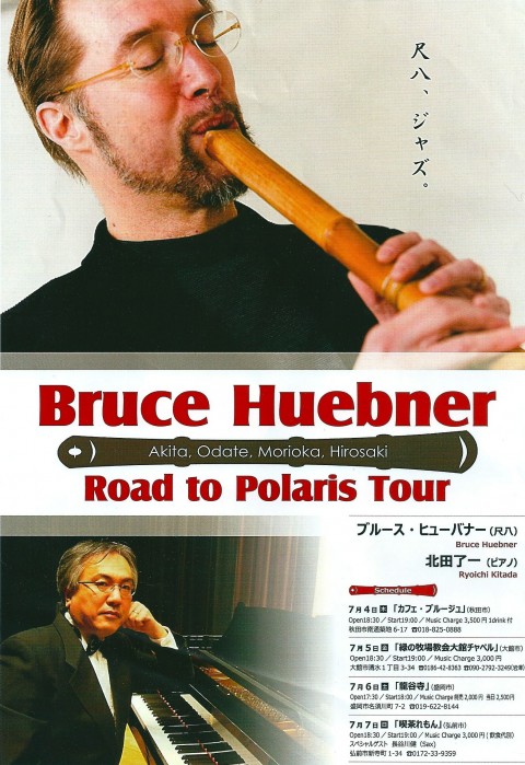来る7月4日(木)、いつものカフェ・ブルージュにて、北田了一(ピアノ)さんとブルース・ヒューバナー(尺八)さんの、「Road to Polaris Tour」ライブが開催されます!!!