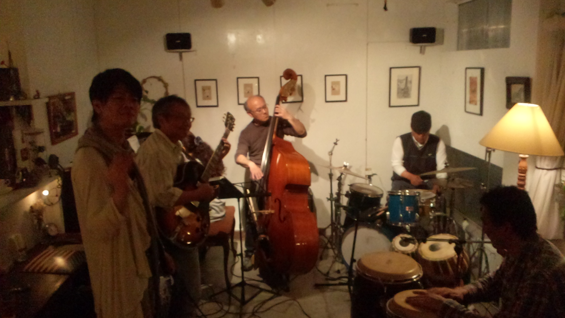 そしてセッションタイム!!! 最後のサンバだけ、シェイカーで参加しました。「パンデイロは!?」当然のお声を頂戴しましたが、現在修理中なのです^^;